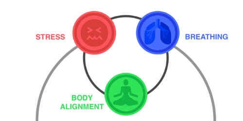 Stress leads to tension in the body, which leads to pain. The reverse can also happen, since body pain leads to tension, which increases feeling of stress. Body pain and stress has a “chicken-and-egg” relation. Thus, instead of focusing on which is the chicken and which is the egg, we can focus on practical stress management for any existing chronic or recurring body pain. Some practical stress management tips include taking 5 minutes to write a grateful journal during bedtime right before sleep, turning the radiation emitting devices like mobiles into airplane mode during sleep to avoid disruptions to sleep, and drinking enough water in sips throughout the day to ensure proper hydration and moisture absorption.1b. Breathing Pattern